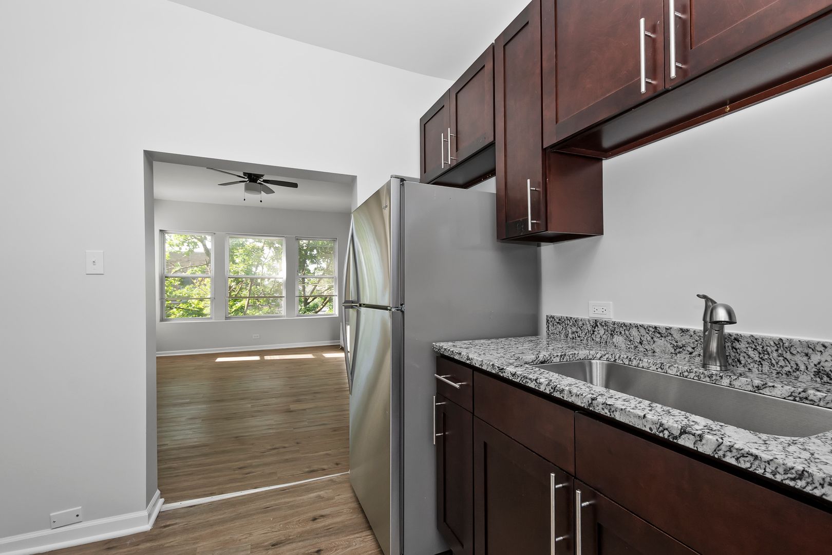 Large condo quality 2-bedroom, 1-bathroom unit with new rehab! Rehabbed kitchen with granite counter tops, stainless steel appliances, rehabbed bathroom, new plumbing, etc.! Onsite Laundry! Quiet block! Heat Included! No security deposit! No pets. No smoking. Please call us at (312) 888-5588 or email us at info@sleepingbearmanagement.com to schedule a showing.