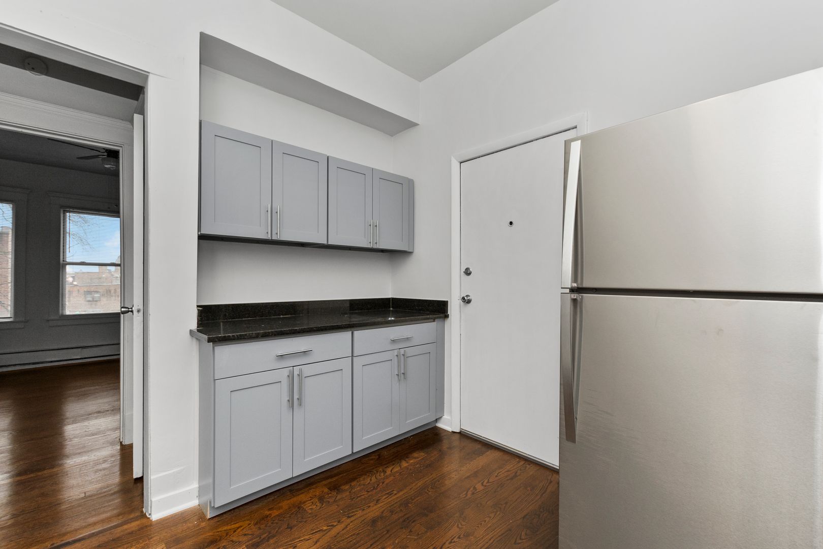 Large condo quality 2-bedroom, 1-bathroom unit with new rehab! Rehabbed kitchen with granite counter tops, stainless & black appliances, rehabbed bathroom, new plumbing, etc.! Quiet block. Heat included! No security deposit! No pets. No smoking. Please call (312)888-5588 or email us at info@sleepingbearmanagement.com to set up a showing. Please apply at rentbutter.com/sleepingbear